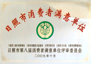 日照市消费者满意单位 日照市争创零投诉活动先进单位